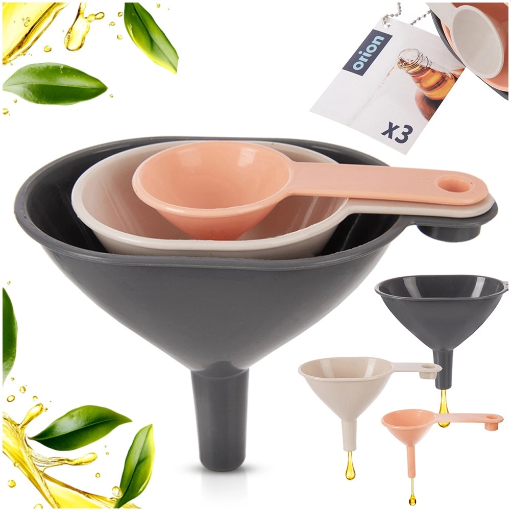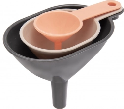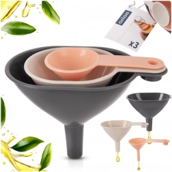 Mały, średni i duży lejek sprawdzą się przy przelewaniu płynów i przesypywaniu produktów sypkich do naczyń o różnej szerokości szyjki.