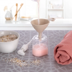 - Przelewanie płynów, wsypywanie suchych produktów, napełnianie butelek i naczyń z wąską szyjką