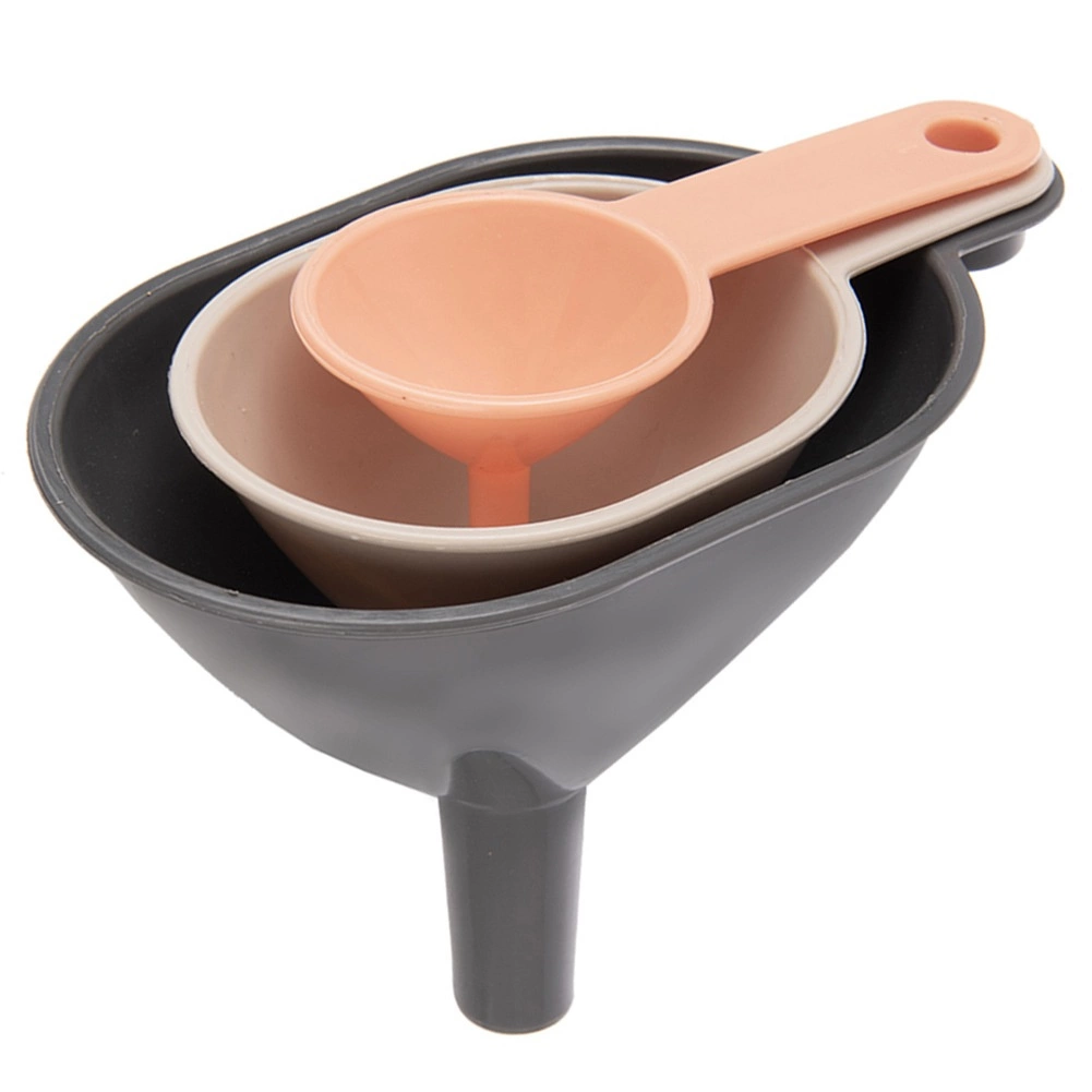 Praktyczny zestaw trzech kuchennych lejków w różnych rozmiarach ułatwia precyzyjne przelewanie i wsypywanie bez bałaganu. Lejki są lekkie, ale wytrzymałe, mają wygodne uchwyty, można je zawiesić oraz wkładać jeden w drugi, aby oszczędzać miejsce, a także są odpowiednie do zmywarki. Idealne do napełniania butelek, słoików i naczyń z wąską szyjką w domu i spiżarni.