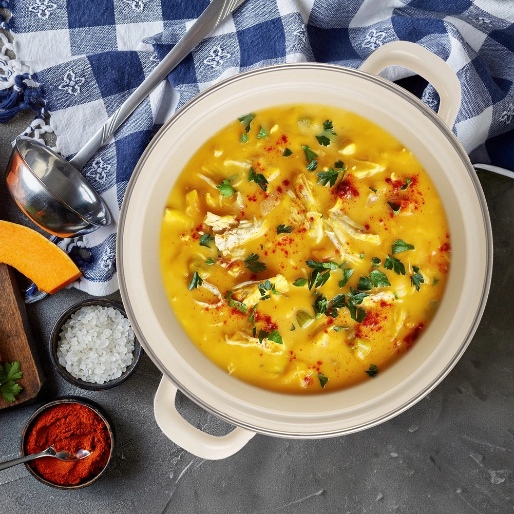 Popularny retro design łączy się z wytrzymałym wykonaniem ze stali emaliowanej, która jest bezpieczna dla zdrowia i przyjazna dla alergików. Garnek świetnie nadaje się do zup, sosów i dań duszonych, a dzięki eleganckiemu wyglądowi doskonale sprawdzi się także do stylowego serwowania bezpośrednio na stół.