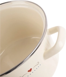 Wysokiej jakości stal emaliowana jest higieniczna i łatwa w czyszczeniu. Nierdzewny rant zwiększa trwałość i nadaje garnkowi elegancki wygląd.