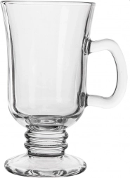 Elegancka szklanka do latte o pojemności 250 ml ze stabilną nóżką i wygodnym uchem jest idealna do serwowania latte, cappuccino, herbaty oraz grzanego wina. Wykonana z trwałego, przezroczystego szkła, odpowiednia do codziennego użytku w domu i gastronomii oraz nadaje się do mycia w zmywarce.