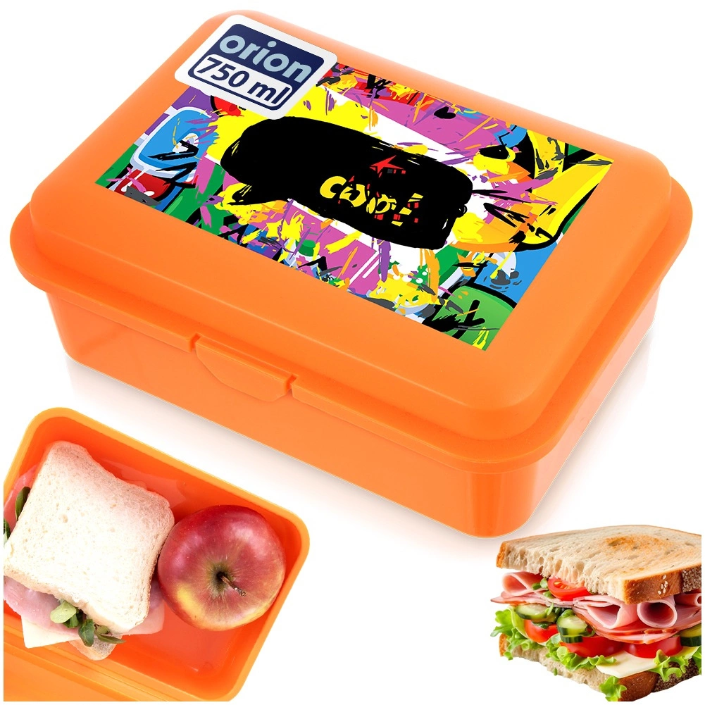 Utrzymaj przekąskę świeżą i pod ręką. Pomarańczowe pudełko śniadaniowe z wesołym nadrukiem Cool jest idealne dla dzieci do szkoły i dla dorosłych w podróży. Dzięki solidnemu klipsowi zawartość pozostaje bezpiecznie zamknięta, a kompaktowe wymiary mieszczą się do plecaka czy torebki.