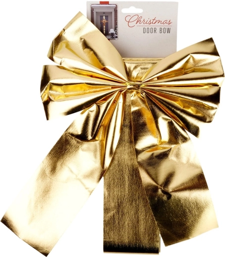 Stylowa złota kokarda idealnie sprawdzi się do bożonarodzeniowego i uroczystego dekorowania drzwi wejściowych. Błyszcząca powierzchnia wysokiej jakości poliestru pięknie odbija światło i tworzy reprezentacyjny efekt już od progu. Dzięki praktycznemu zapięciu na rzep montaż jest szybki, beznarzędziowy i delikatny dla powierzchni drzwi.