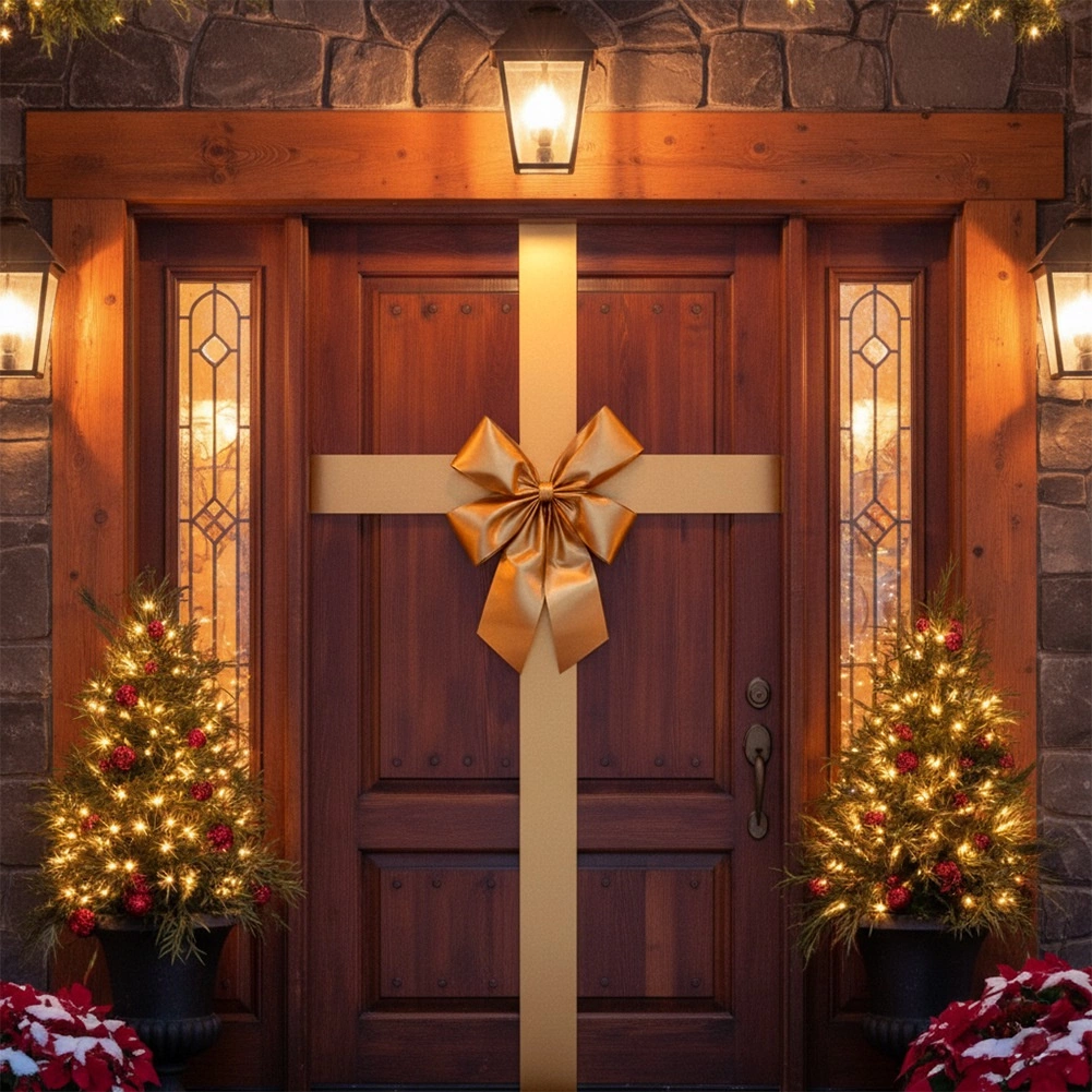 W zestawie znajduje się wyjątkowo długa wstążka o długości 4,3 m, którą łatwo owiniesz drzwi pionowo i poziomo, uzyskując wygląd „zapakowanego prezentu”. Materiał jest trwały i wielokrotnego użytku, zachowuje kształt i się nie gniecie, dzięki czemu wykorzystasz dekorację przez wiele sezonów.