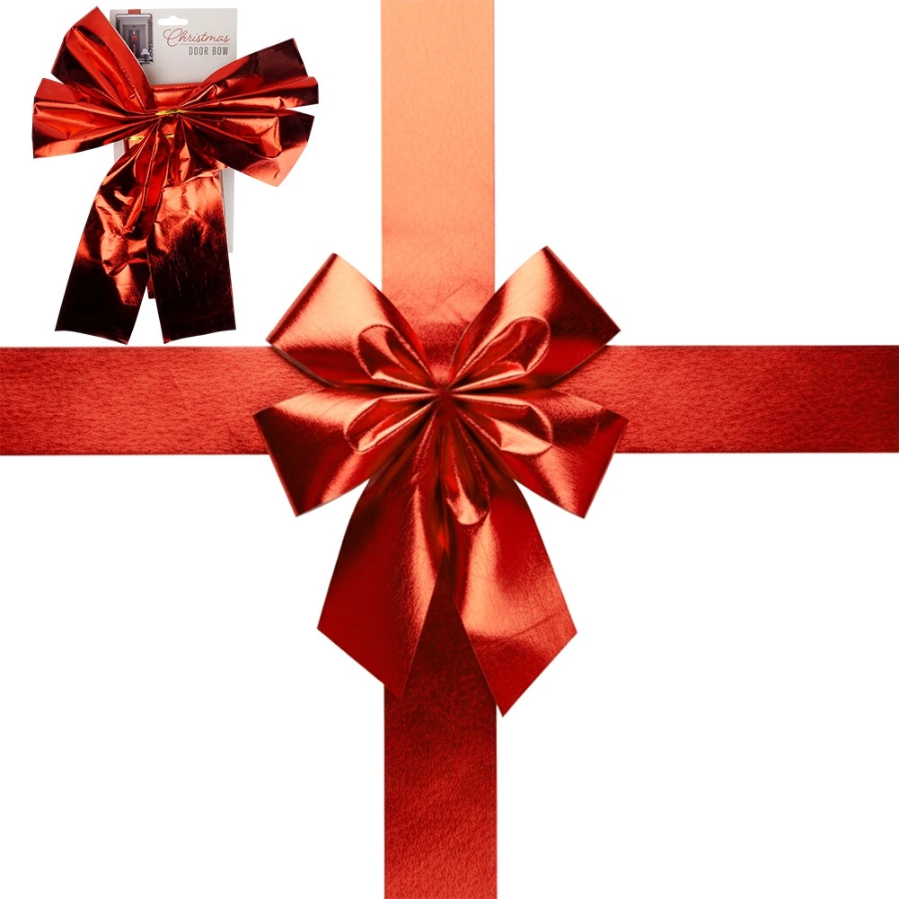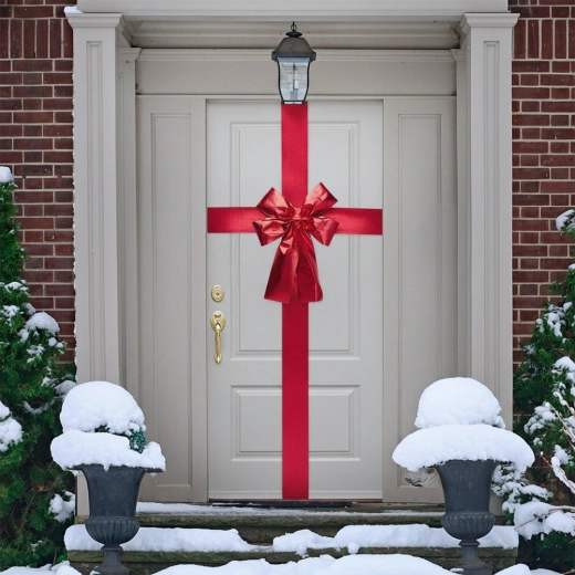 Wprowadź do domu prawdziwą świąteczną atmosferę w kilka minut. Ta wyrazista czerwona kokarda z wstążką o długości 4,3 m pozwala ozdobić standardowe drzwi zarówno pionowo, jak i poziomo, tworząc efekt drzwi zapakowanych jak prezent. Błyszcząca powierzchnia pięknie odbija światło i nadaje dekoracji luksusowy, odświętny wygląd.