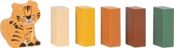 Kolorowe drewniane cegiełki, rama z podstawą, 2 drewniane pałeczki, figurka tygryska