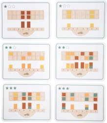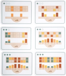 - Równoważnia, 16 kolorowych drewnianych klocków, inspirujące karty z zadaniami