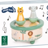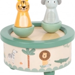 Czarująca drewniana pozytywka z motywem safari od small foot zachwyci dzieci i rodziców. Na magnetycznych podstawkach w rytm melodii „Twinkle, Twinkle, Little Star” obracają się dwie urocze figurki – tygrys i słoń. Wykonana z 100% drewna FSC, o delikatnych kolorach i nowoczesnym designie, stanie się piękną dekoracją pokoju dziecięcego, a jednocześnie wspiera rozwój motoryki, wyobraźni i miłości do muzyki.