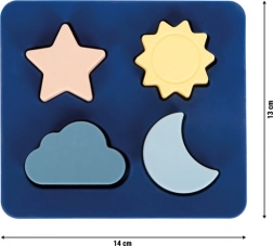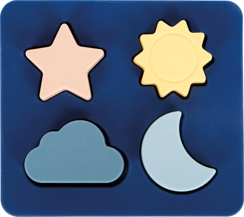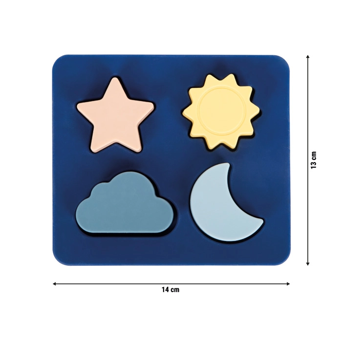 Urocze dziecięce puzzle z 100% silikonu spożywczego bez BPA zapewniają bezpieczną i zabawną naukę dla maluchów. Zawiera 4 elementy w kształcie słońca, księżyca, gwiazdy i chmurki, które można wkładać z różnych stron. Zabawka jest miękka, niełamliwa, nietoksyczna, łatwa do mycia i idealna do zabawy w domu, w wodzie i w piasku – perfekcyjna w podróży i do rozwoju małej motoryki oraz percepcji sensorycznej.