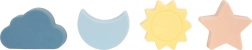 Cztery elementy w kształcie słońca, księżyca, gwiazdy i chmurki wspierają rozwój małej motoryki, koordynacji i percepcji sensorycznej.