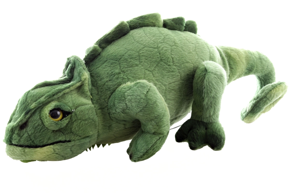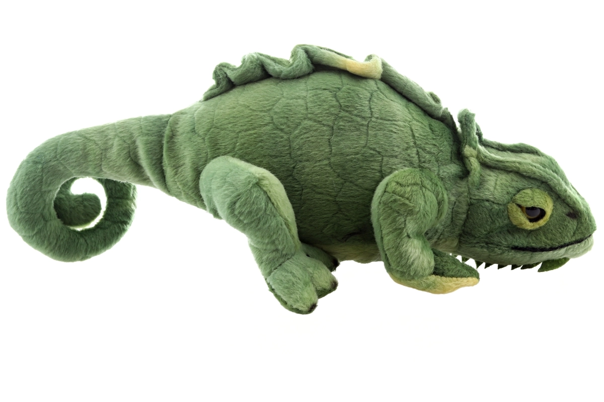 Ten ekologiczny pluszowy kameleon zachwyca realistycznym wyglądem z charakterystycznie ukształtowanym ciałem, subtelnymi detalami na grzbiecie i zawiniętym ogonem. Mięciutkie wypełnienie i aksamitna powierzchnia gwarantują komfortowe przytulanie, a haftowane oczy i staranne szwy zapewniają bezpieczeństwo nawet dla najmłodszych.
