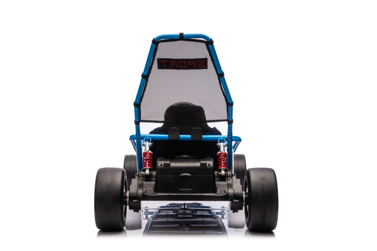 Solidna konstrukcja udźwignie do 50 kg, masa gokarta to 24,5 kg. Wymiary 123 × 75 × 80 cm ułatwiają manewrowanie i przechowywanie. W zestawie znajduje się ładowarka oraz czytelna instrukcja z zestawem montażowym.
