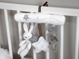 • Uniwersalne mocowanie – praktyczne wstążki do wózka i łóżeczka.