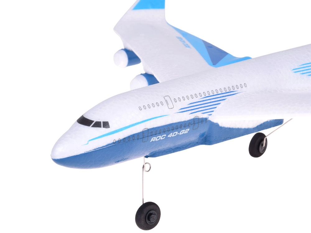 Lekka i elastyczna konstrukcja z EPP zapewnia wysoką odporność na uderzenia i łatwą naprawę. Realistyczny design inspirowany dużymi samolotami pasażerskimi, funkcjonalne podwozie oraz wyrazista grafika sprawiają, że model jest atrakcyjnym wyborem do rekreacyjnego latania na otwartej przestrzeni. Paski LED nadają lotom efektowny wygląd także o zmierzchu.