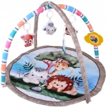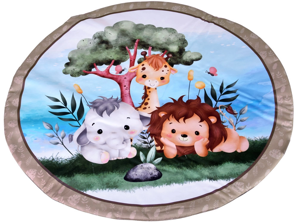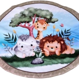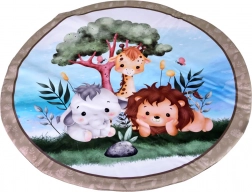 Miękka, wyściełana i stabilna okrągła mata z motywami zwierząt zapewnia przytulne miejsce do zabawy i wypoczynku. Odpowiednia od urodzenia, idealna do leżenia na brzuszku.