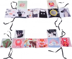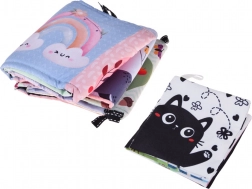 Lekkie materiałowe książeczki z barwnymi i kontrastowymi motywami oraz zintegrowanym lusterkiem wspierają uwagę wzrokową, ciekawość i pierwsze interakcje maluszka.
