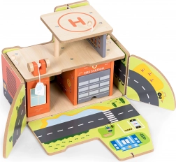 Garaż, zjazd, dachowe lądowisko i nadrukowane drogi inspirują do różnorodnej zabawy w akcje ratunkowe.