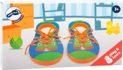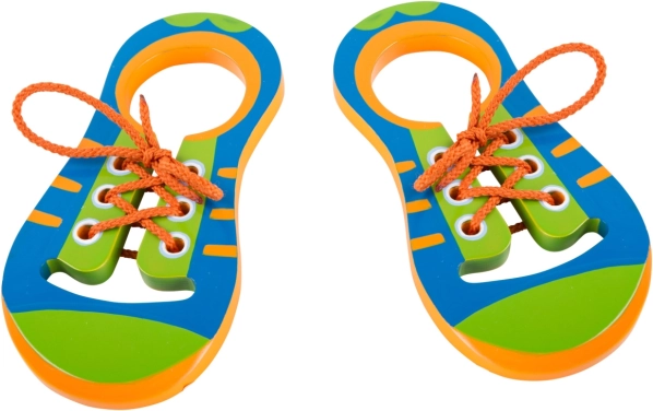 Dzięki tym płaskim drewnianym butom w żywych kolorach dzieci w zabawny sposób nauczą się wiązać sznurowadła lub robić węzły. Jeden lewy i jeden prawy but oferują wystarczająco dużo miejsca do ćwiczeń. To także świetny towarzysz w podróży! Dzięki tej grze edukacyjnej dzieci mogą zyskać odrobinę samodzielności! Główne cechy: odpowiednie w podróż, uczy dzieci samodzielności