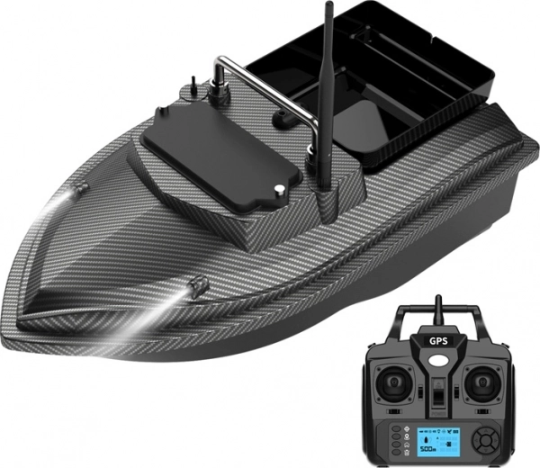 Sterowanie odbywa się przez pilot GPS z podświetlanym LCD, który oferuje stałą prędkość przelotową, kontrolę oświetlenia oraz przycisk zwolnienia zanęty. Wytrzymały kadłub z ABS wzmacnianego włóknem węglowym, składana metalowa rączka i osłony śrub zapewniają długą żywotność i bezpieczną eksploatację.