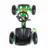 Szerokie pompowane koła z łożyskami (25 × 8 cm) tłumią nierówności i zapewniają lepszą przyczepność. Regulowane sportowe siedzisko łatwo dopasujesz do wzrostu dziecka, co wspiera prawidłową postawę ciała i komfort nawet podczas dłuższej jazdy. Ochronna osłona łańcucha i plastikowe osłony zwiększają bezpieczeństwo i trwałość całości.