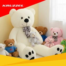 Gigantyczny pluszowy miś KRUZZEL 180 cm zachwyca od pierwszego spojrzenia – jego rozmiar tworzy prawdziwy „efekt wow”. Kremowy odcień ecru, haftowany nosek, błyszczące oczka i elegancka kokarda nadają mu przyjazny i realistyczny wygląd. Miękkie ciało jest przyjemne w dotyku, sprężyste w siedzeniu i leżeniu, i świetnie sprawdzi się jako przytulanka, poduszka i dekoracja.