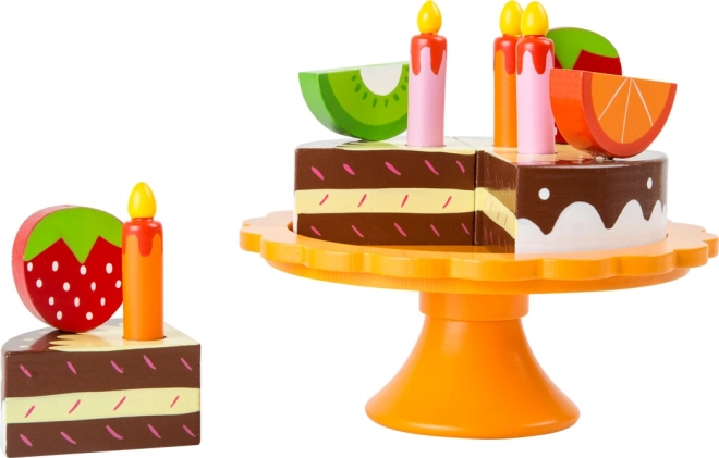 Drewniany urodzinowy tort owocowy marki Small Foot jest idealny na każde przyjęcie dziecięce. Interaktywna zabawka pozwala dzieciom bawić się poszczególnymi kawałkami owoców, które są przymocowane za pomocą patyczków i mogą być łatwo przenoszone. Świece i dekoracje nadają tortowi autentyczny wygląd, a dzieci mogą bawić się w prawdziwą urodzinową imprezę.