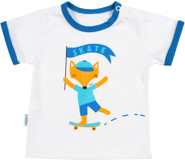 Uroczy 2‑częściowy bawełniany zestaw NEW BABY z motywem lisa ucieszy każdego małego chłopca. Zawiera koszulkę z krótkim rękawem i wygodne szorty, idealne na lato. Koszulka ma praktyczne zapięcie na ramieniu ułatwiające ubieranie i jest ozdobiona wesołym obrazkiem lisa z napisem SKATE. Szorty są jednokolorowe z elastyczną gumką w pasie. Wykonane w 100% z bawełny dla miękkości, oddychalności i komfortu podczas codziennego noszenia.