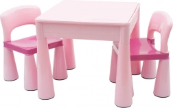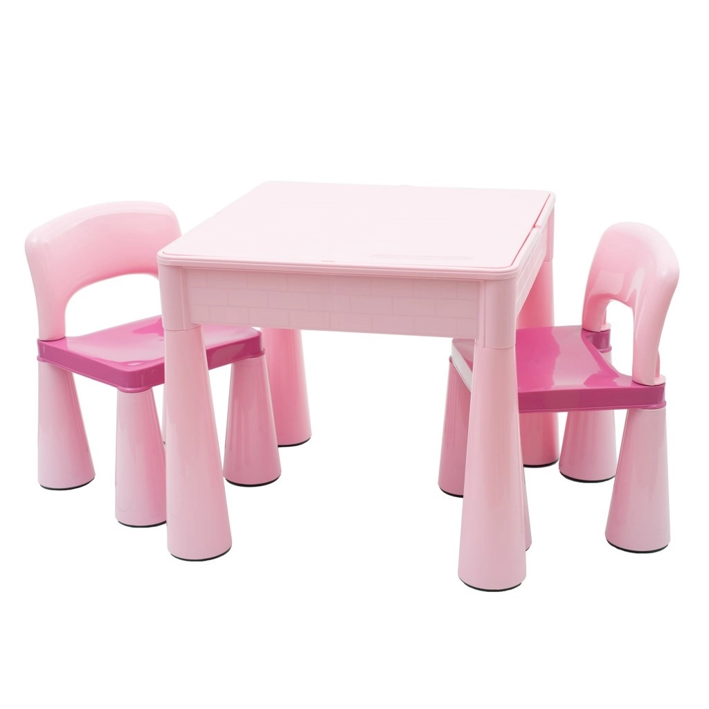 Praktyczny dziecięcy zestaw New Baby obejmuje stolik i dwa krzesełka w eleganckim różowym kolorze. Stół ma dwustronny blat: po odwróceniu służy jako płyta bazowa pod LEGO i LEGO DUPLO. Pod blatem znajduje się przestrzeń do przechowywania na zabawki lub artykuły plastyczne, a w razie potrzeby można ją wykorzystać również jako mini piaskownicę lub do zabaw wodnych.