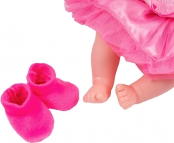 W brzuszku znajduje się kieszonka z modułem, który po naciśnięciu odtwarza 5 ulubionych węgierskich piosenek (np. Beültettem kiskertemet, Boci boci, Boldog születésnapot, Süss fel nap!, Mókuska, mókuska) oraz mówi 14 węgierskich zdań (np. anyuci buci, apuci buci, anyuci ölelj meg, apuci ölelj meg). Dzięki temu Tina jest nie tylko piękną zabawką, ale też interaktywną towarzyszką, która wspiera wyobraźnię i zabawy w odgrywanie ról.