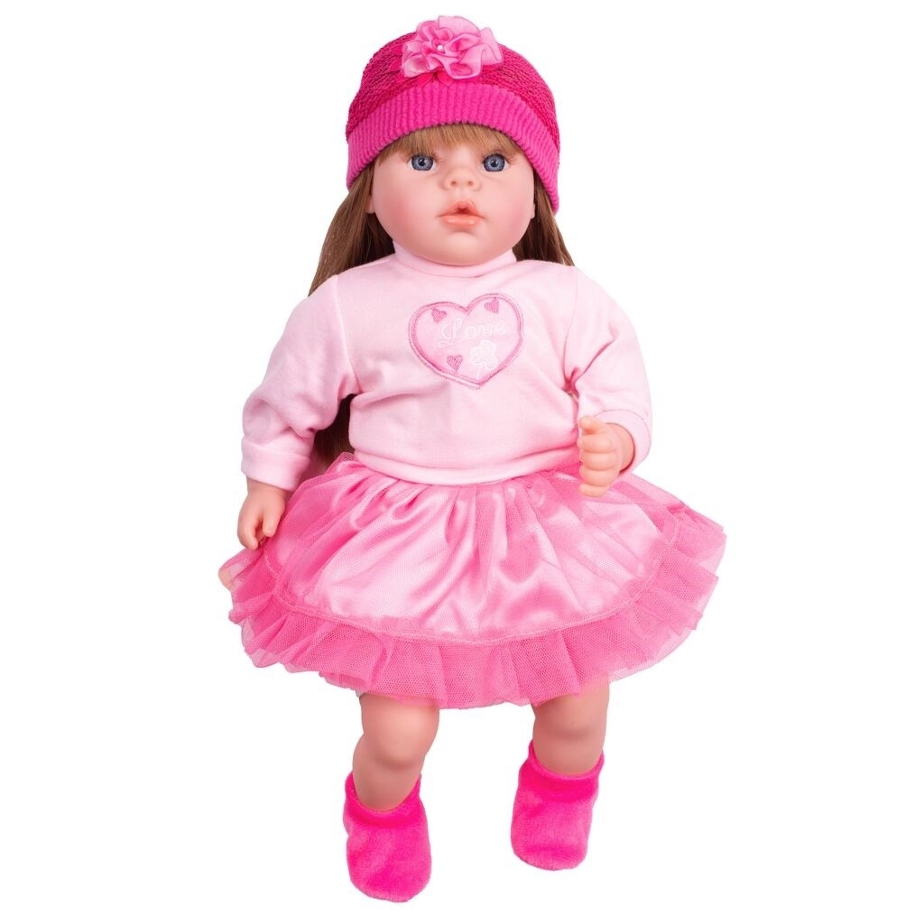 PlayTo Tina to czarująca lalka z miłą buźką, niebieskimi oczami i różowymi ustami, która podbije serce każdego dziecka. Miękkie ciałko jest idealne do tulenia, a głowa, ręce i nogi z gumy zapewniają realistyczny wygląd i przyjemny dotyk. W stylowym stroju – tiulowa spódniczka, koszulka z napisem, skarpetki i czapeczka – zawsze wygląda świetnie, a odzież można łatwo zdjąć i wyprać.