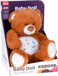 Pluszowy miś z projektorem gwiazd i kołysankami, lampka nocna do zasypiania