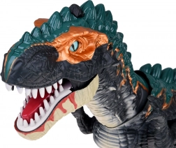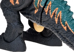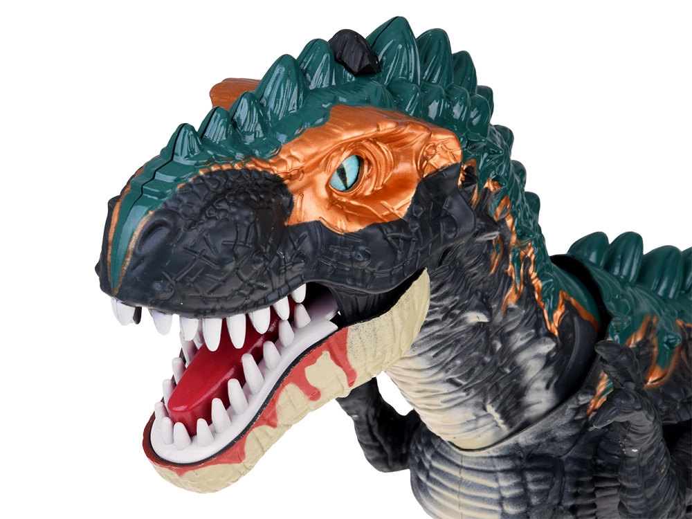 Duży model najsłynniejszego dinozaura T‑Rexa zachwyca dopracowaniem szczegółów: wyraziste zęby, realistyczne oczy, faktura powierzchni przypominająca skórę dinozaura, pazury i grzbietowe wypustki. Po włączeniu T‑Rex rusza do przodu, porusza głową, przednimi łapami i ogonem oraz wydaje imponujący ryk.