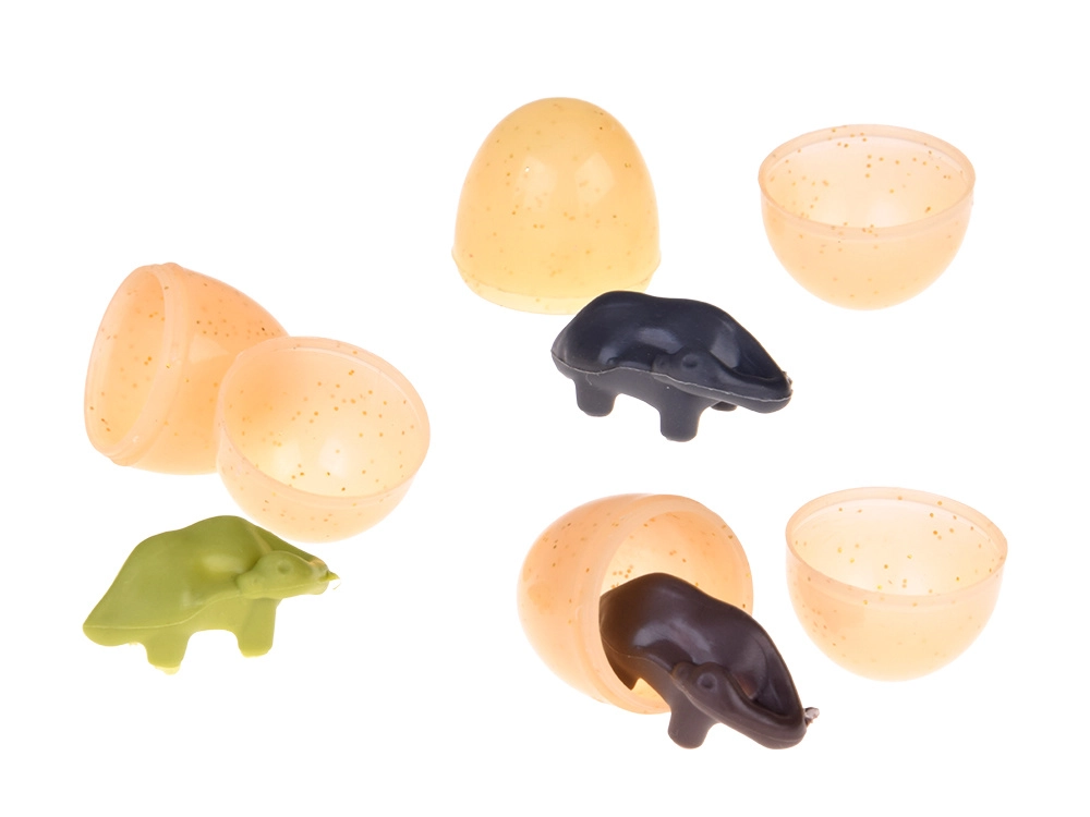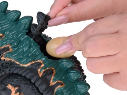 • Składa jajka: 3 jajka z małymi dinozaurami w środku