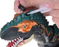 Interaktywny dinozaur T‑Rex, 3 otwierane jajka, 3 figurki małych dinozaurów, buteleczka do napełniania wodą