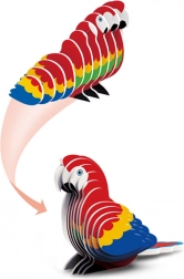 Złóż własną figurkę kolorowej papugi ary z kartonowego modelu 3D składającego się z 24 elementów. Proste łączenie na zatrzask bez kleju rozwija motorykę małą, cierpliwość i wyobraźnię przestrzenną. Świetny prezent i oryginalna dekoracja pokoju dla dzieci od 3 lat.