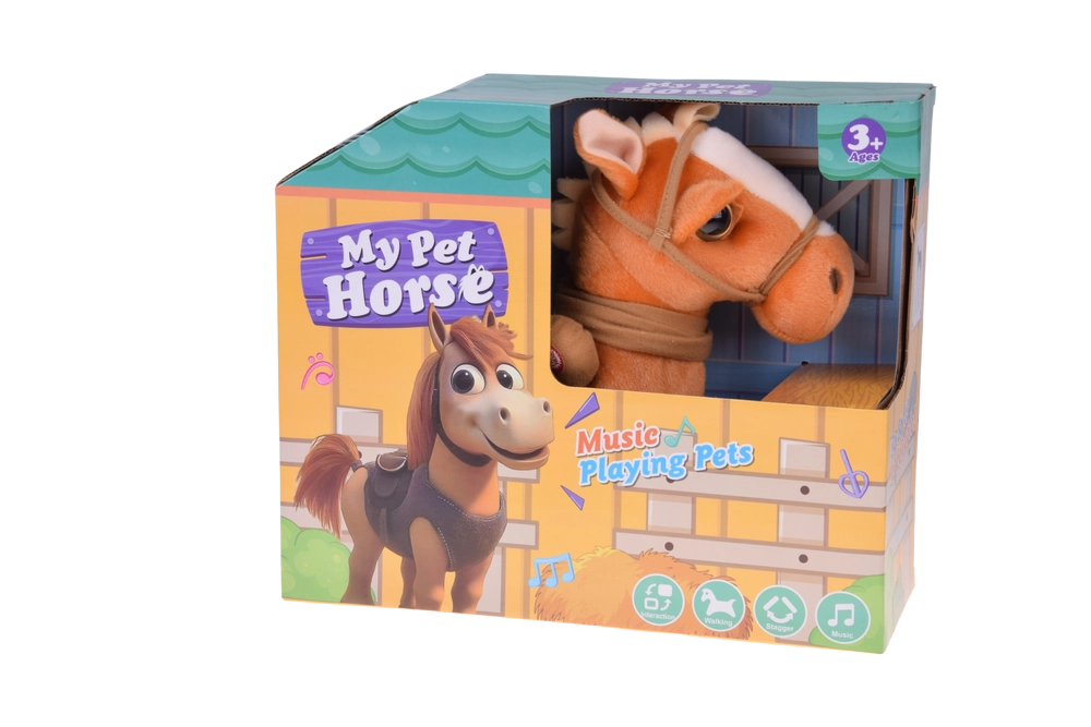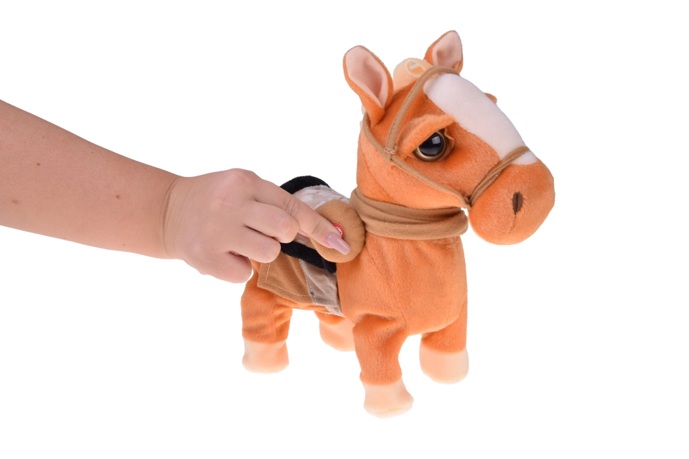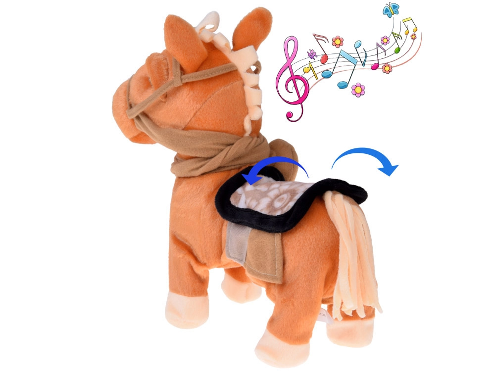 Po naciśnięciu przycisku konik ożywa: rozstawia nóżki, kroczy i prezentuje zabawny taniec w towarzystwie muzyki country – gwarancja dobrego nastroju.