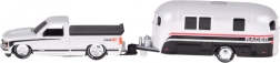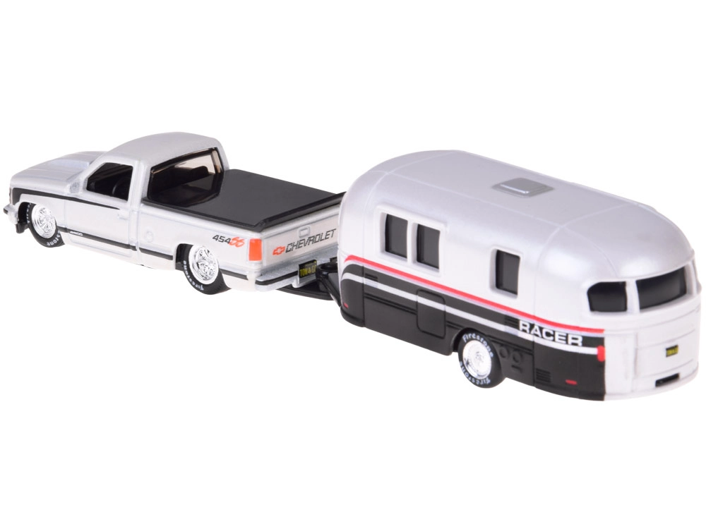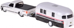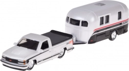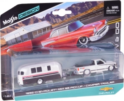 Kolekcjonerski zestaw marki Maisto prezentuje legendarny 1993 CHEVROLET 454 SS w skali 1:64 uzupełniony o funkcjonalną przyczepę kempingową. Metalowe nadwozie, plastikowe podwozie oraz precyzyjne detale gwarantują wierne odwzorowanie i świetny wygląd w każdej kolekcji. Zestaw oferuje zdejmowany hak holowniczy oraz odłączaną przyczepę, co zwiększa możliwości ekspozycji i zabawy.