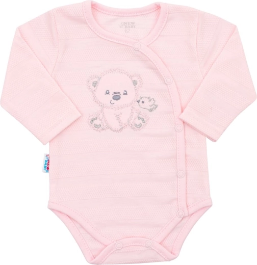 Uroczy 4‑częściowy zestaw niemowlęcy New Baby Sweet Bear w kolorze różowym jest idealny do szpitala i na pierwsze tygodnie w domu. Zawiera body rozpinane na całej długości z długim rękawem, pajacyk, kaftanik i czapeczkę z 100% bawełny. Wygodne napy ułatwiające przewijanie, miękki materiał delikatny dla skóry oraz subtelny haft misia i ptaszka sprawiają, że zestaw jest praktyczny i stylowy.