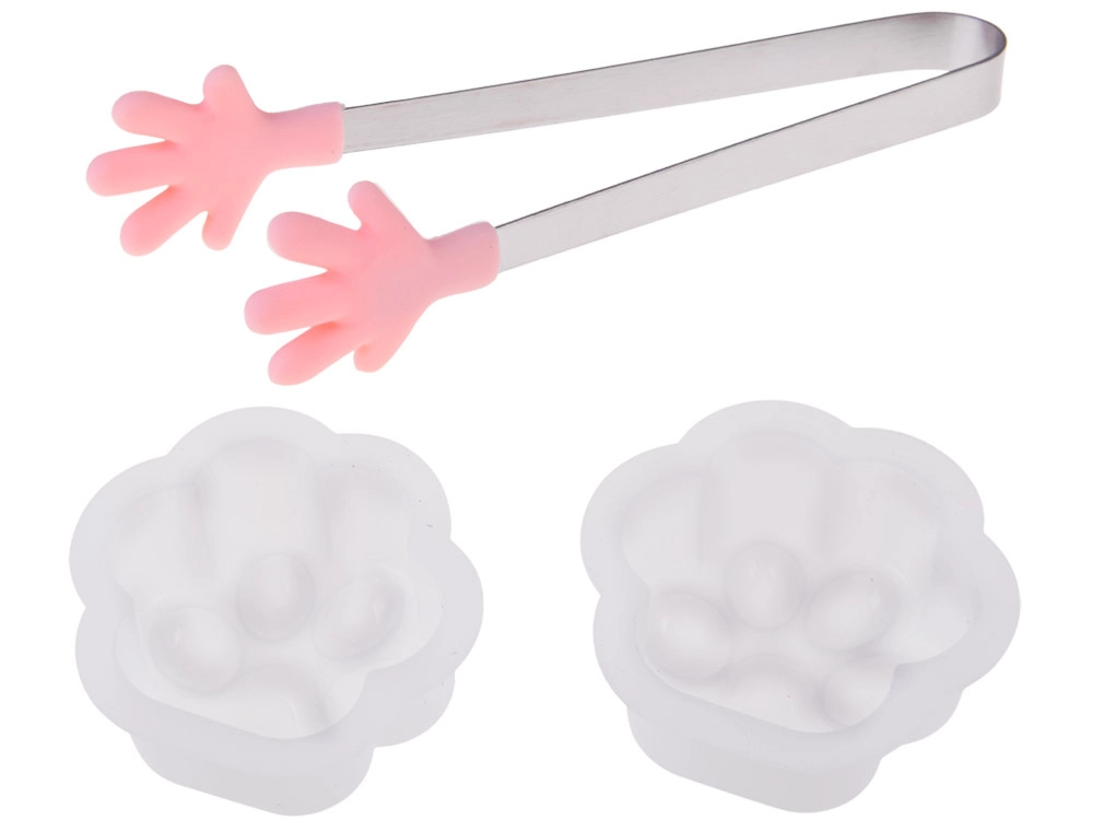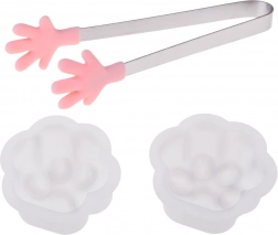 Metalowe szczypczyki z delikatnymi silikonowymi końcówkami oraz foremki w kształcie łapek ułatwiają precyzyjne chwytanie i formowanie drobnych dekoracji.