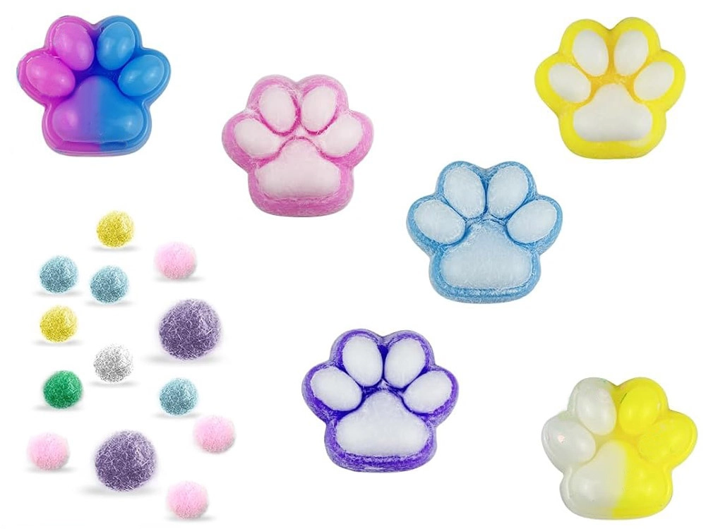 - Kreatywny zestaw DIY – śluzowe breloczki w kształcie kocich łapek 3D