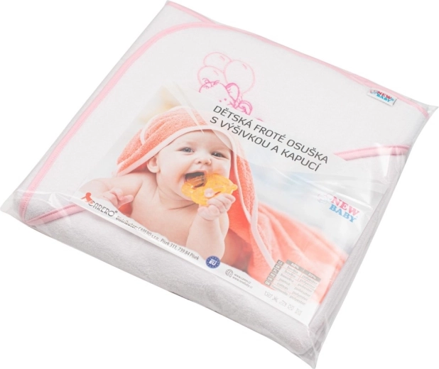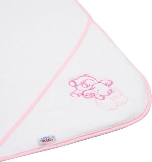 Miękki i delikatny dziecięcy ręcznik z kapturem New Baby o wymiarach 80 × 80 cm jest idealny dla niemowląt i starszych dzieci. Z wysokiej jakości frotte, które jest bardzo chłonne, szybko schnie i przyjemnie ogrzeje po kąpieli. Praktyczny kaptur chroni główkę przed chłodem, a wesoły haft słonika doda radości każdej kąpieli.