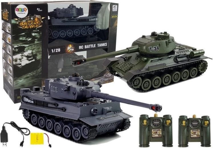 - Kompletny zestaw: 2 czołgi, 2 kontrolery, 2 akumulatory, 2 ładowarki, figurki żołnierzy
