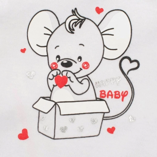 Materiał z 100% bawełny jest miękki, oddychający i delikatny dla wrażliwej skóry, dlatego świetnie sprawdzi się na co dzień. Dzięki zapięciu na napki na ramieniu i między nóżkami przewijanie i ubieranie to kwestia chwili.