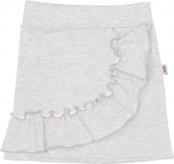 Spódniczka w szarym melanżu ma piękną falbankę, która wygląda lekko i dziewczęco. W pasie znajduje się szersza elastyczna gumka, która dopasowuje się i nie uciska. Połączenie czystej bawełny w koszulce oraz bawełny z elastanem w spódniczce zapewnia miękkość, oddychalność i przyjemną elastyczność dla całodziennego komfortu.
