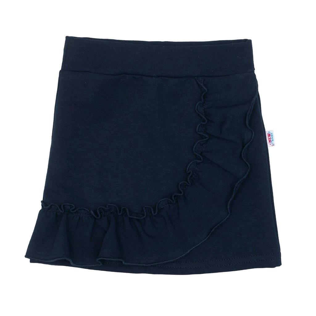 Ciemnoniebieska spódniczka z szerokim elastycznym pasem nie uciska brzuszka, a dekoracyjna falbanka dodaje stylowego wyglądu.