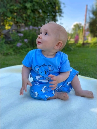 Ten dwuczęściowy zestaw jest idealny na ciepłe dni i spokojny sen. Koszulka z zapięciem na ramieniu na napy umożliwia szybkie i wygodne ubieranie, a przewiewna bawełna zapewnia maksymalny komfort przez cały dzień. Szorty mają miękki, elastyczny pas, który nie uciska i dopasowuje się do brzuszka maluszka.