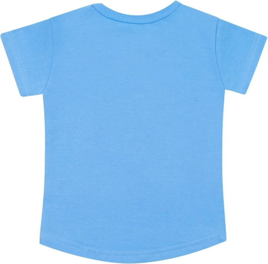 Urocza dziecięca letnia piżamka New Baby Dream w niebieskim kolorze z przyjemnej 100% bawełny. Zestaw tworzy koszulka z krótkim rękawem i krótkie spodenki. Koszulkę zdobi uroczy motyw misia na chmurce i gwiazdek, ma praktyczne zapięcie na ramieniu na napy dla łatwego ubierania. Spodenki są w całości w nadruk misiów i mają szerszy elastyczny pas, który jest wygodny i nie uciska brzuszka. Idealna jako letnia piżamka i wygodne domowe ubranko dla maluszka.