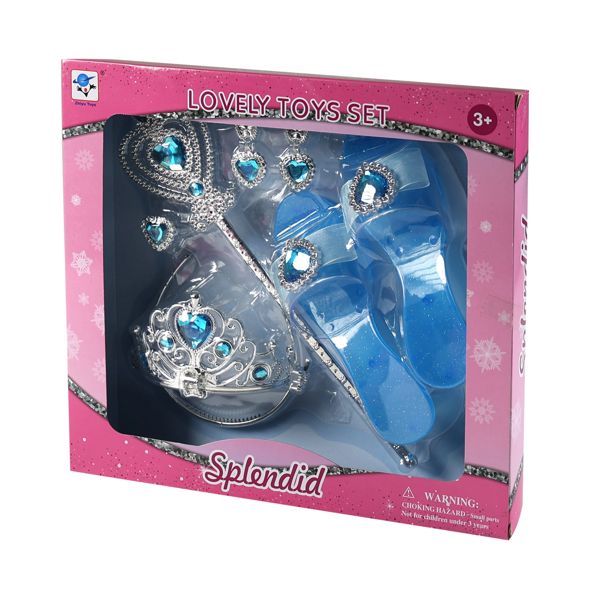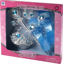 Zamień małe marzenia w rzeczywistość dzięki temu magicznemu zestawowi do przebierania. W komplecie znajdują się niebieskie pantofelki na obcasie, srebrna korona, magiczna różdżka, kolczyki oraz pierścionek z niebieskimi kamyczkami. Lekka plastikowa konstrukcja i połyskujące detale sprawiają, że zestaw jest idealny na karnawały, przyjęcia oraz domową zabawę.