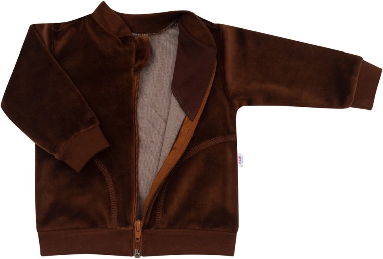 Stylowa dziecięca zamszowa bluza NEW BABY w brązowym kolorze oferuje komfort na co dzień. Ma praktyczne zapięcie na zamek na całej długości oraz ściągacz w pasie i przy rękawach dla lepszego dopasowania. Dzięki miękkiemu i przyjemnemu materiałowi jest idealna dla wrażliwej dziecięcej skóry.